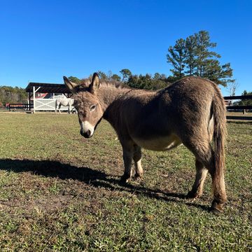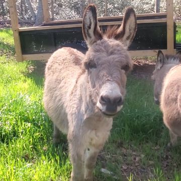 Meet Pixie, the adorable 3-year-old miniature donkey with a heart as sweet as can be. Despite her small size, Pixie is a bundle of affection, embodying all the charm and warmth of a loyal companion. Standing at the size of a medium dog, she's the perfect, pint-sized friend who always brightens your day with her gentle demeanor and friendly nuzzles. With her soft, grey coat and endearing eyes, Pixie has a way of melting hearts and making everyone feel loved and cherished.