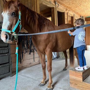This would be approximately an hour private event and would include your child meeting his pony, watching or helping to brush and saddle her up and then going for a fun ride hand-led around the ring or down the trial for older kids (but always hand-led), followed by treats to feed the horse or pony and goodbyes. This is $45 and by appointment. We would love to have your child out for a ride or plan a pony event for your child and their friends.